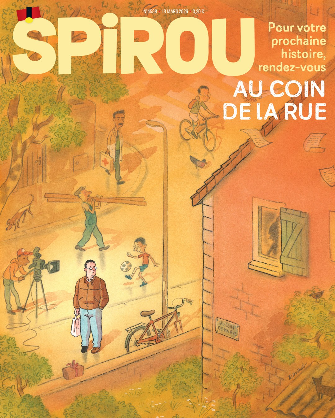 C’était certainement l’un de mes rêves les plus fous, adolescent : faire la une du magazine Spirou un jour ! Grâce à Vincent Zabus et l’aventure Au Coin de ma rue, le rêve se réalise le mercredi 18 mars 2026.